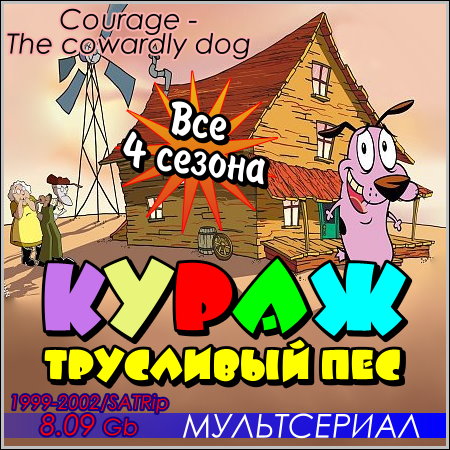Перед Вами мультсериал "Кураж - трусливый пес" (Courage the Cowardly Dog), который рассказывает о приключениях очень трусливой собаки по кличке Кураж. Мюриэл из городка Нигде в Канзасе нашла бедолагу на улице и решила, что они с мужем Юстасом Бэггом воспитают его.